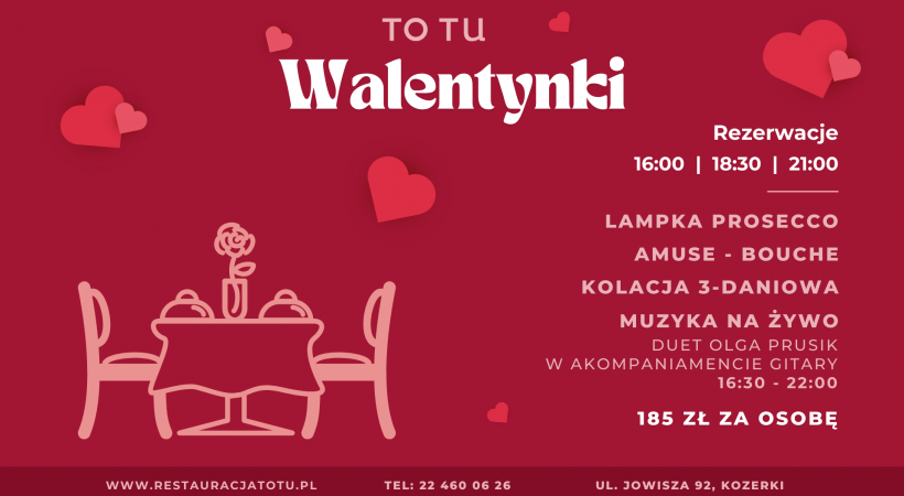 W tym roku 14 lutego wypada w sobotę, dlatego zapraszamy Was do Restauracji To Tu na wyjątkowe walentynkowe popołudnie lub wieczór.